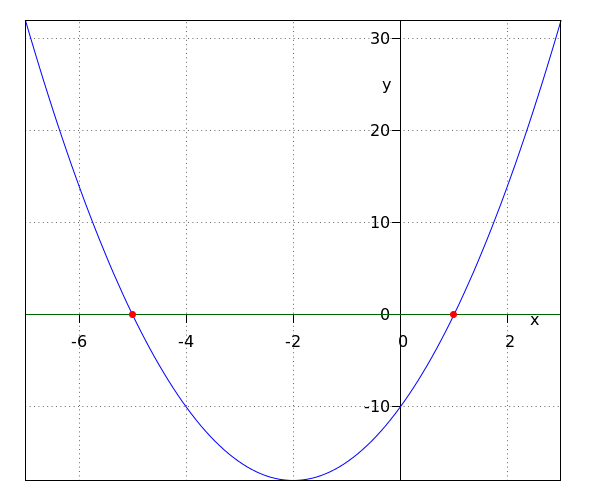 Vervolgens bepalen we de snijpunten met de #x#-as.