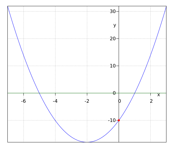 In het algemeen bepalen we het snijpunt met de #y#-as door #x=0# te substitueren in de kwadratische formule.